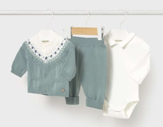en punto y en tono verde para las tallas 4/6 y 18 meses