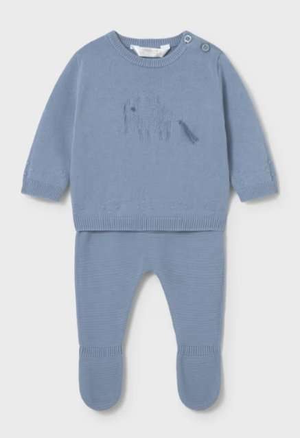 conjunto de hilo mayoral con dibujo de elefante en la parte delantera ,tallas 0/1 y 1/2 meses