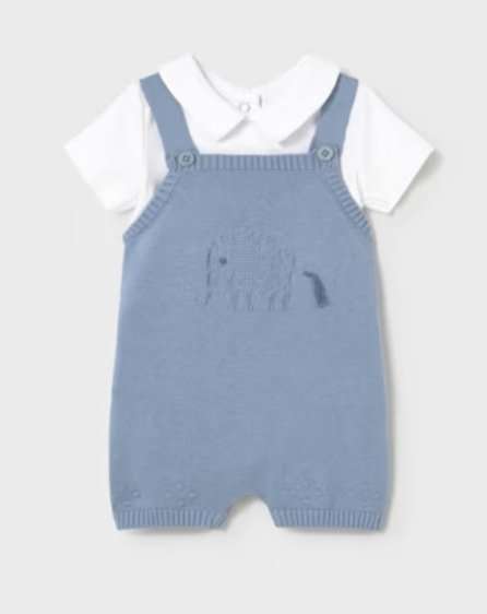 compuesto de camiseta manga corta y peto de hilo con dibujo en el delantero en las tallas 1/2 , 2/4, 4/6 , 6/9 y 12
