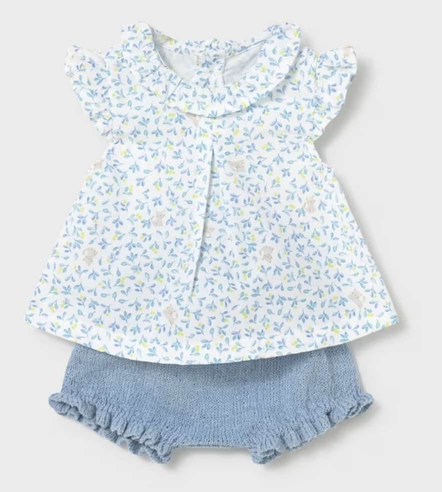 conjunto de blusa estampada y braga lisa en las tallas 1/2 , 2/4 y 4/6 meses