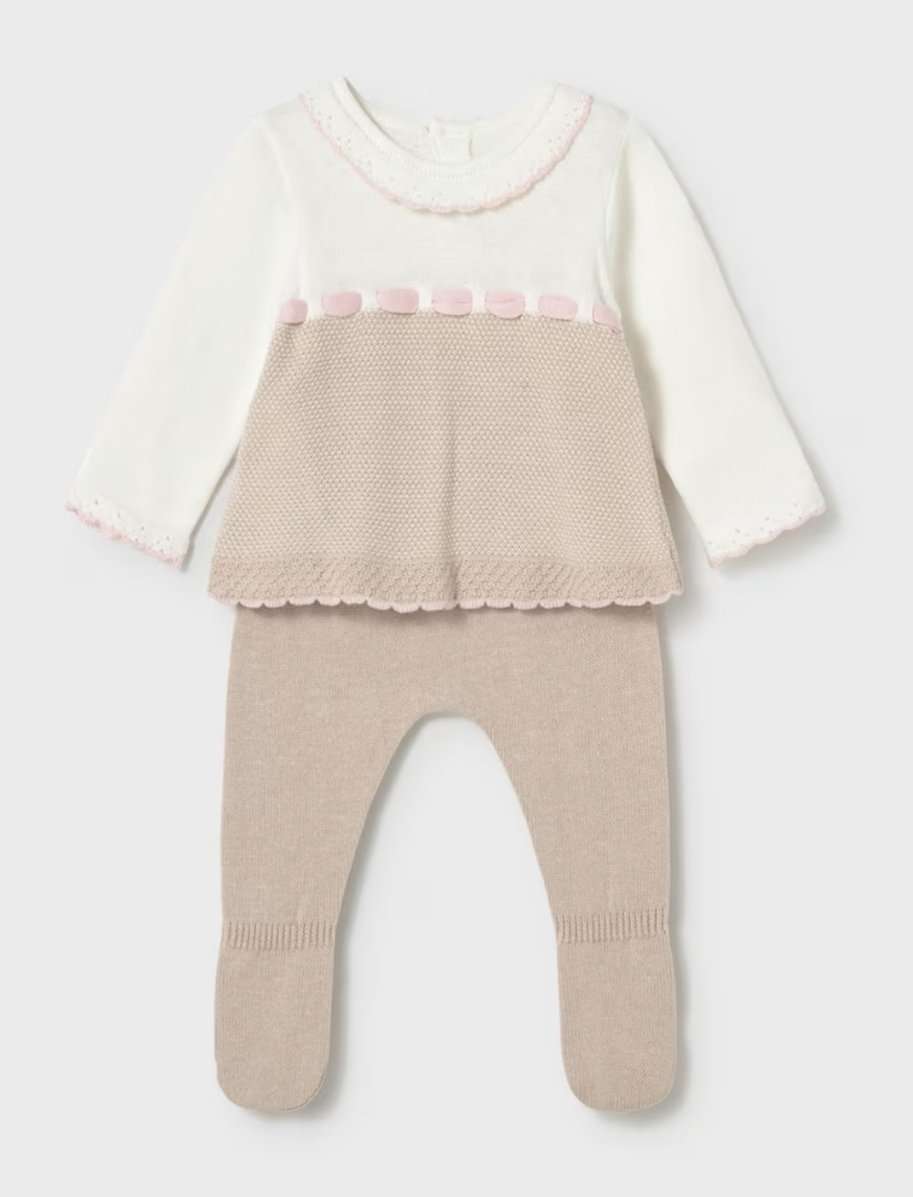 conjunto de polaina en hilo en 2 colores ,para las tallas /1, 1/2 y 2/4 meses