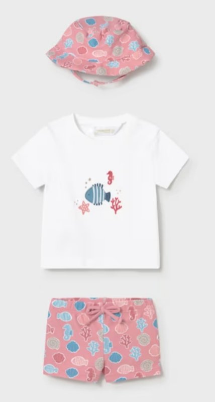 conjunto baño con gorro en las tallas 4/6 meses