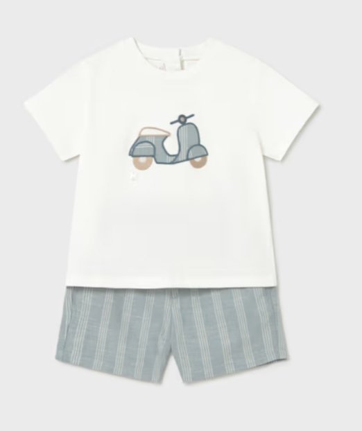 conjunto de camiseta y pantalón arreglado en la talla 18 meses en azulon