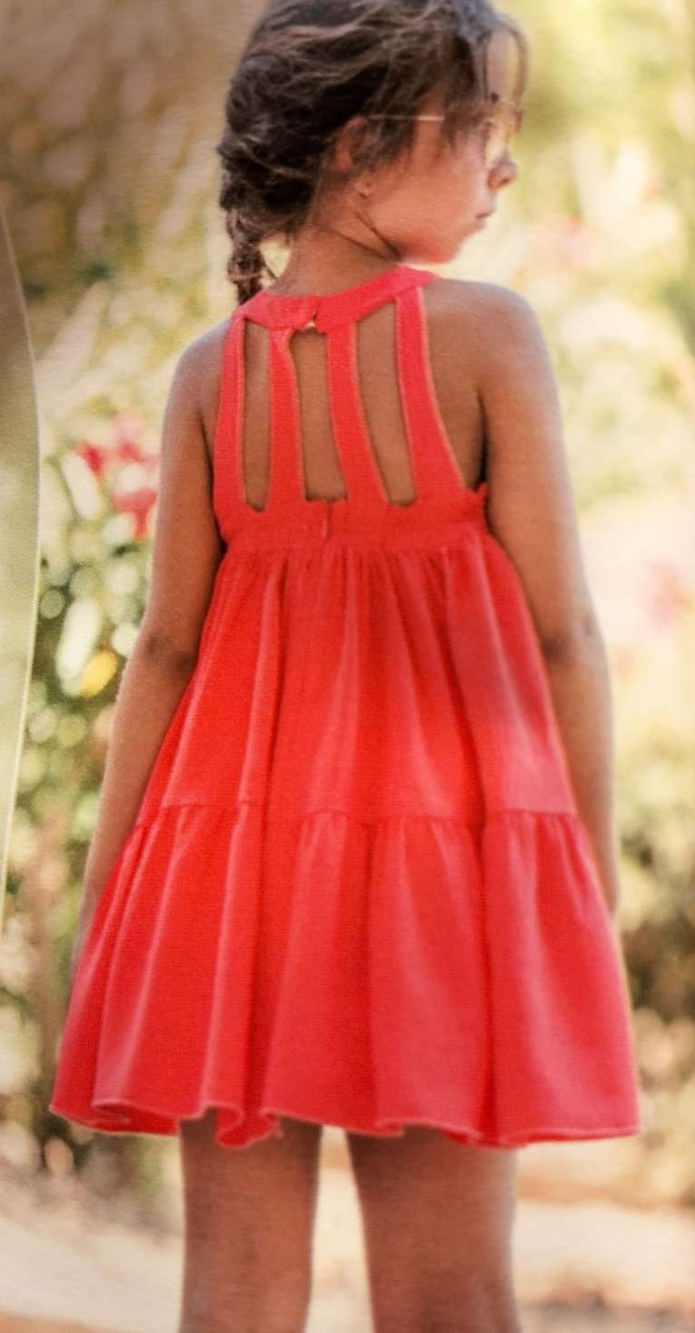 vestido con espalda de tiras en tono rosa y tallas 4 y 5