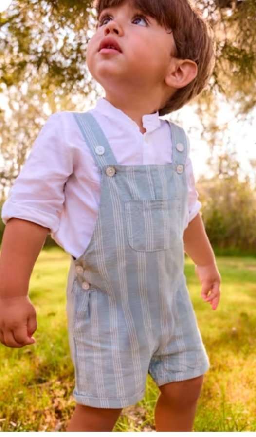 en lino con rayas verdes en las tallas 12 y 18 meses