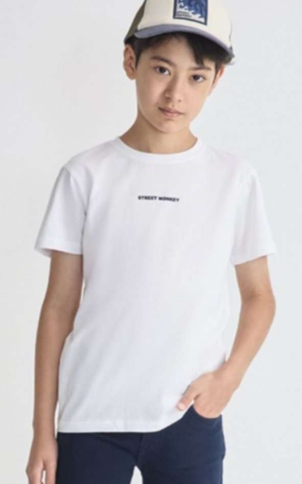 Camiseta blanca con logo trasero en las tallas 6 y 10