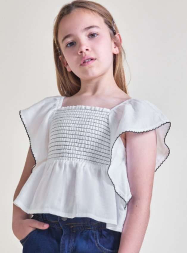 top en blanco con vivos negros en talla 8